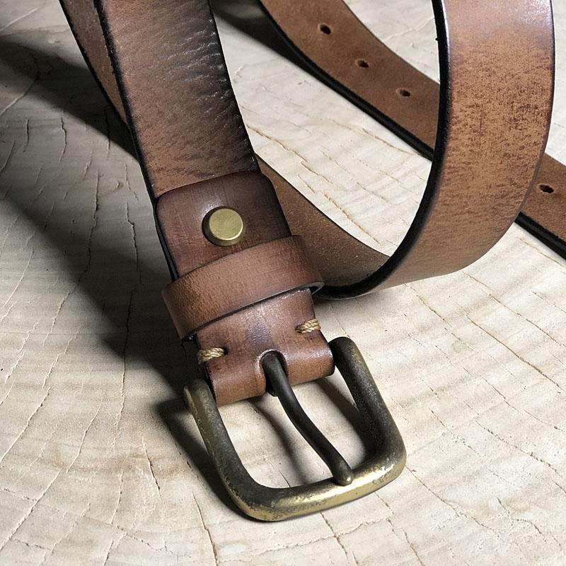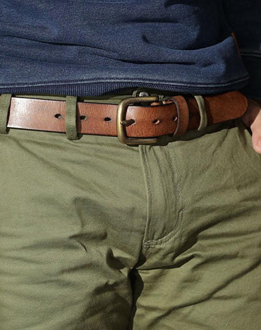 Style: Genuine Leather Retro Simple Leather Belt Mens Khaki Belt Men Browh Belt for Men