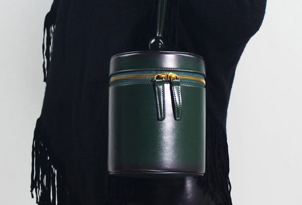 Design: Genuine Leather round circle clutch purse handbag shopper bag for women leather