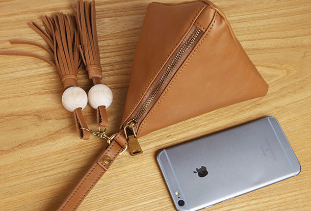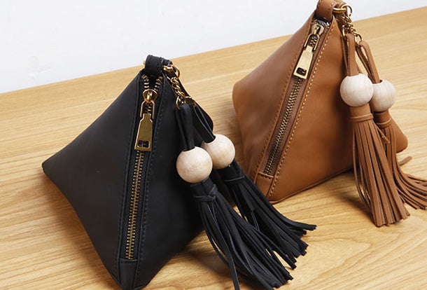 Style: Genuine Leather Trigone Coin Key Wallet Zipper Clutch Wallet Triangle Coin Change Wallet Purse For Women