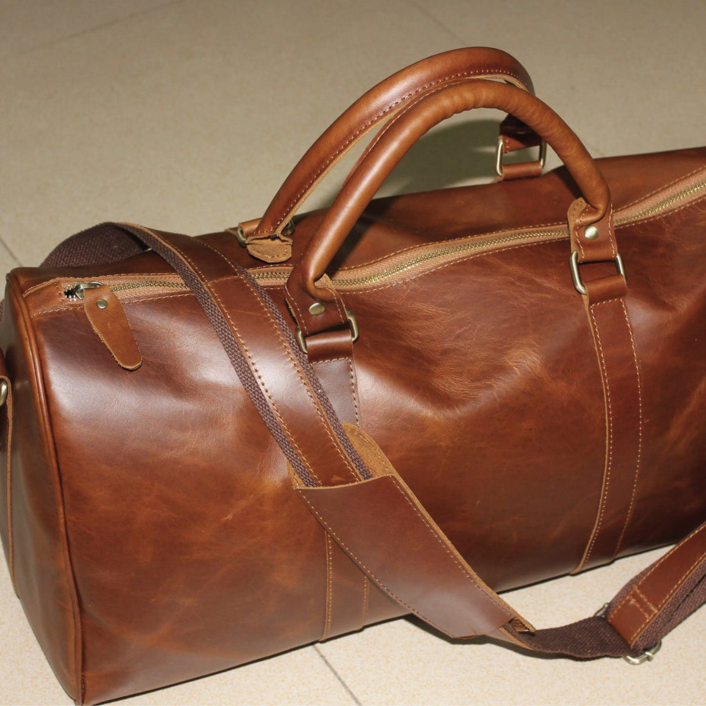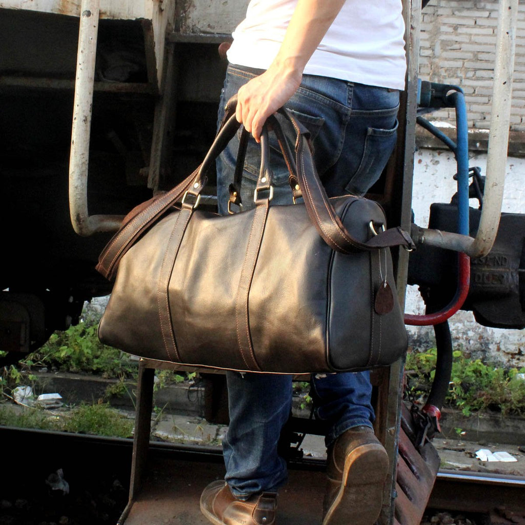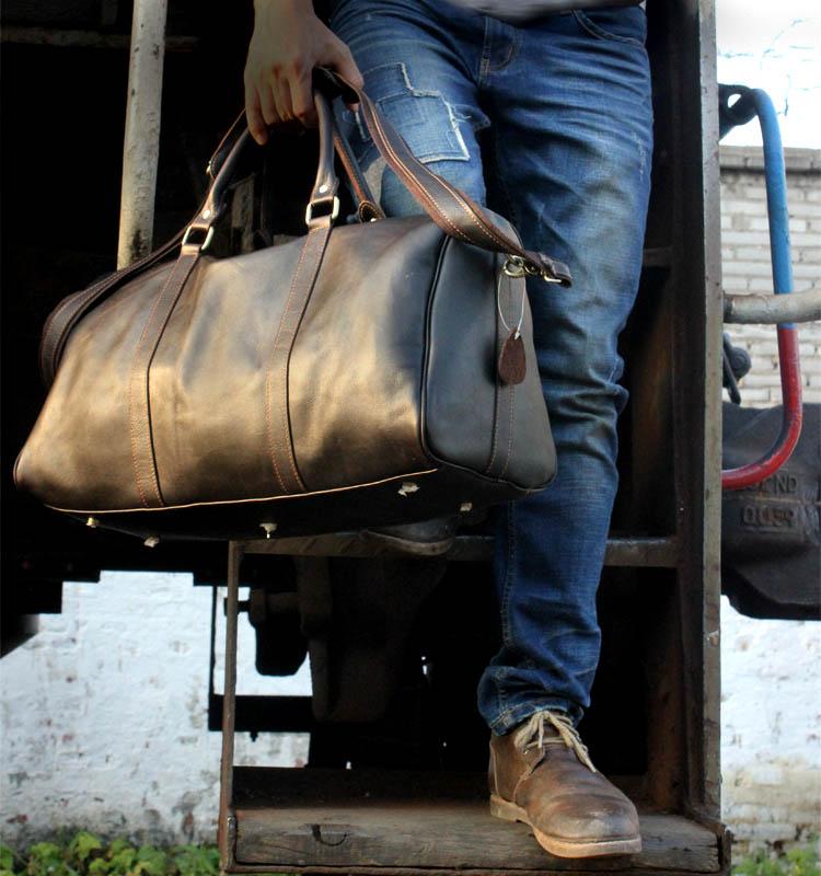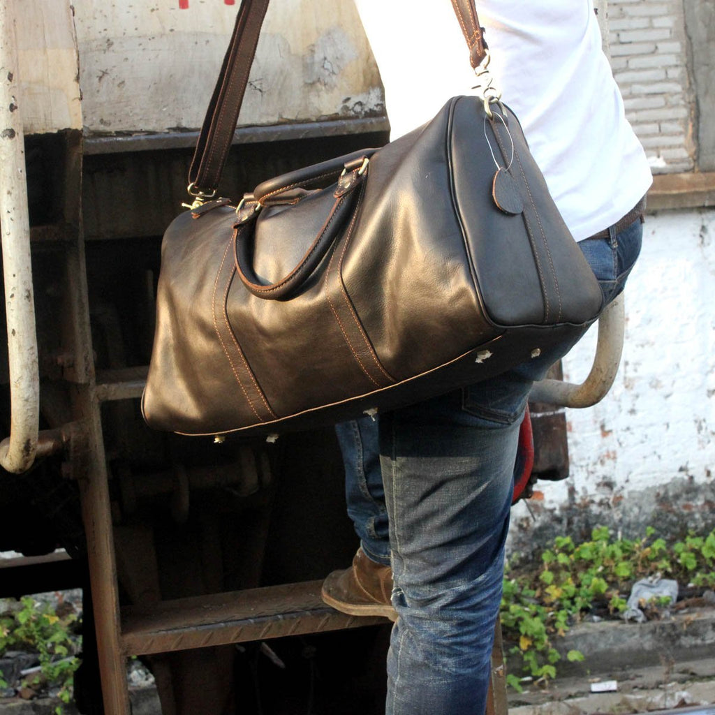Design: Genuine Leather Mens Cool Weekender Bag Travel Bag Duffle Bags Overnight Bag Holdall Bag for men