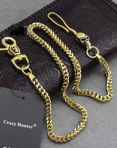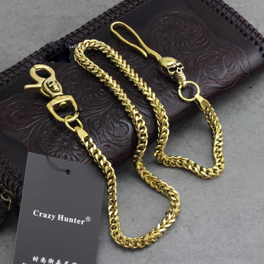 Style: Badass Mens Gold Brass Skull Wallet Chain Long Pants Chain Biker Wallet Chain For Men