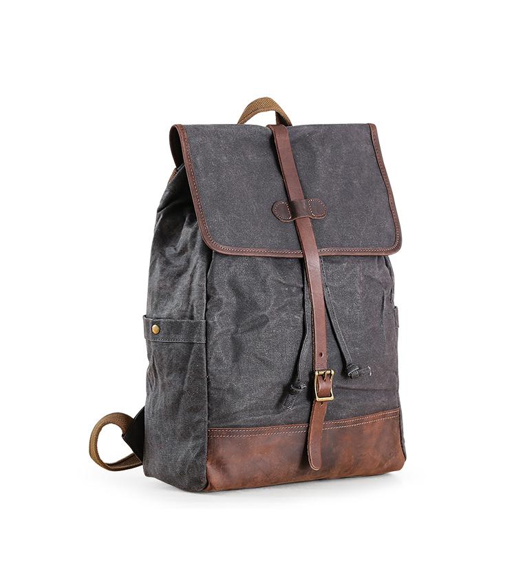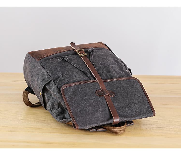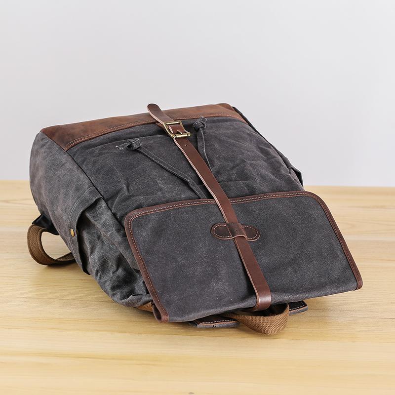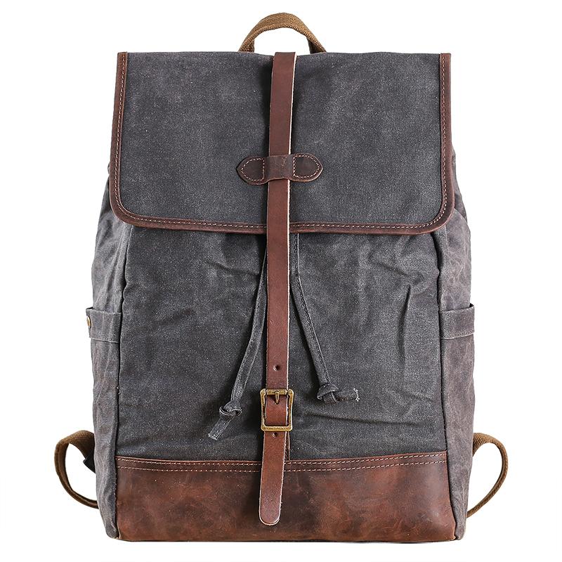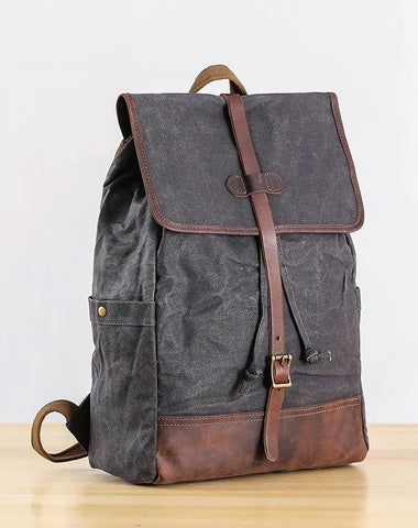 Design: Gray Waxed Canvas Mens Large Laptop Backpack College Backpack Hiking Backpack for Men