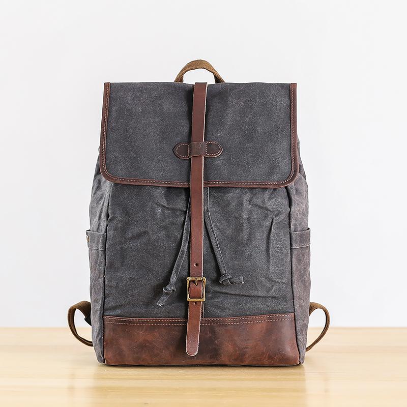 Style: Gray Waxed Canvas Mens Large Laptop Backpack College Backpack Hiking Backpack for Men