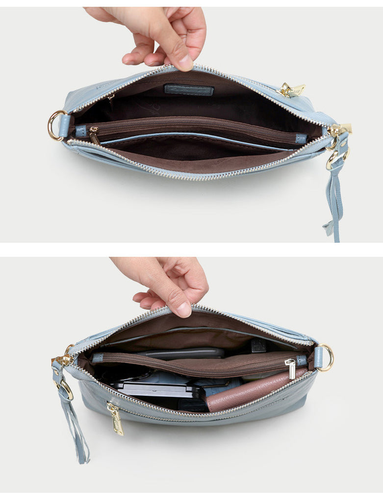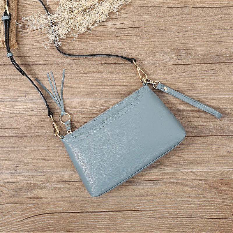 Design: Gray Zip Leather Wristlet Wallet Womens Small Crossbody Purse Minimalist Shoulder Bag for Women
