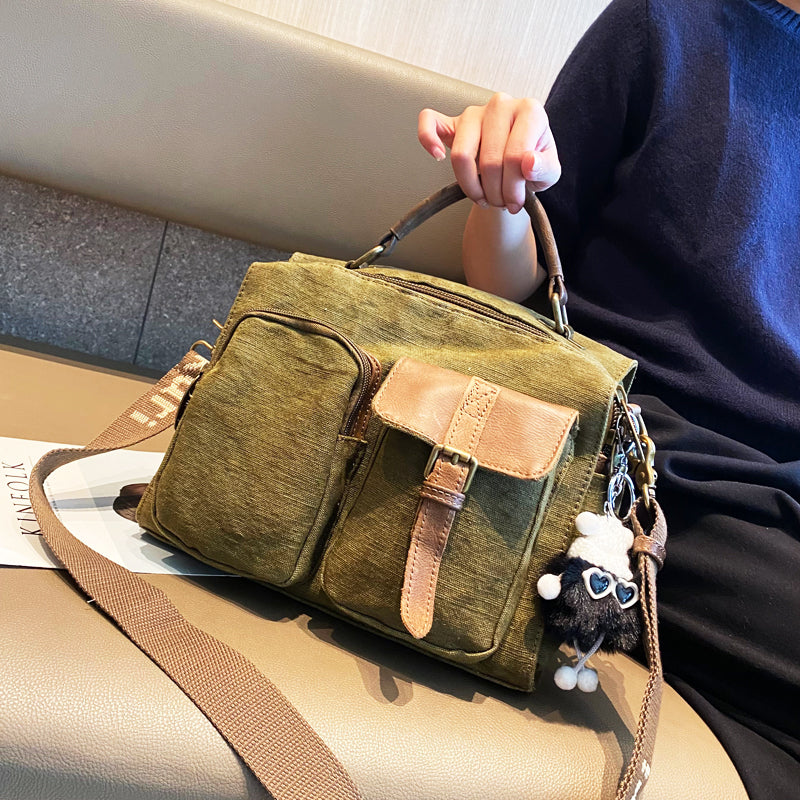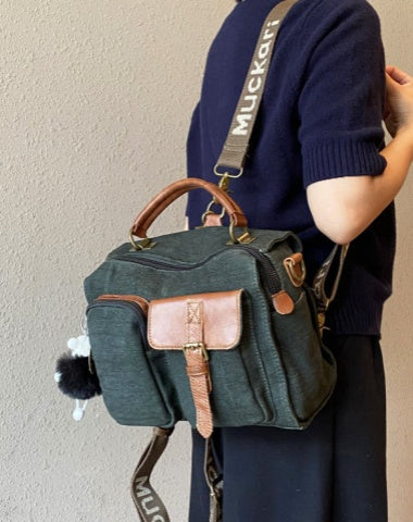 Style: Green Canvas Convertible Messenger Bag Backpack Canvas Convertible Crossbody Bag Canvas Handbag