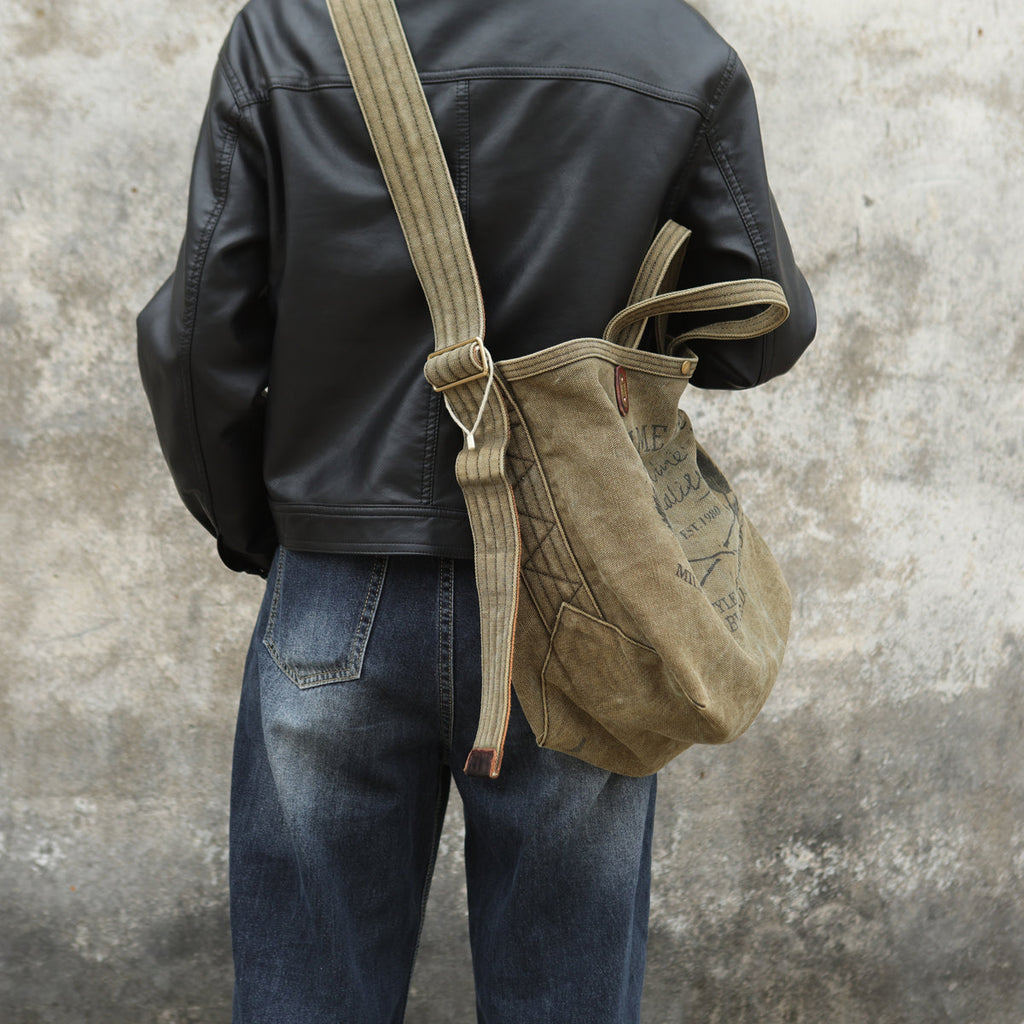 Green Distressed Canvas Tote Messenger Bag Army Green Tote Handbag Canvas Tote Bag