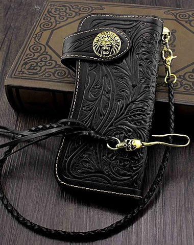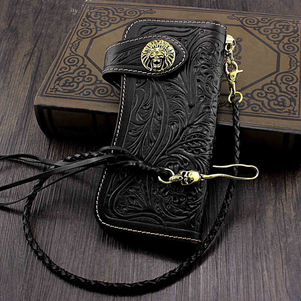 Style: Handmade Black Leather Mens Biker Chain Wallet Biker wallet with Chain Long Wallet For Men