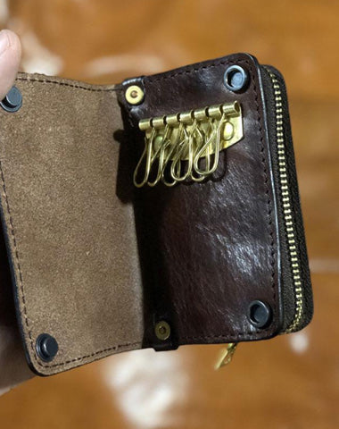 Style: Handamde Genuine Leather Mens Cool Key Wallet Card Slim Wallet Key Holder Car Key Case for Men