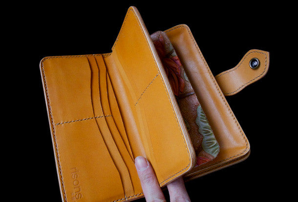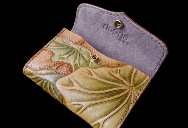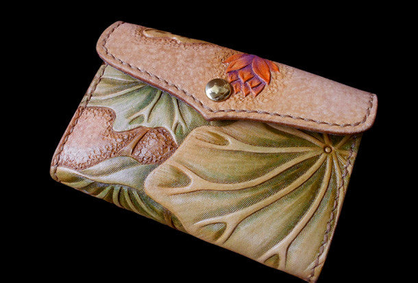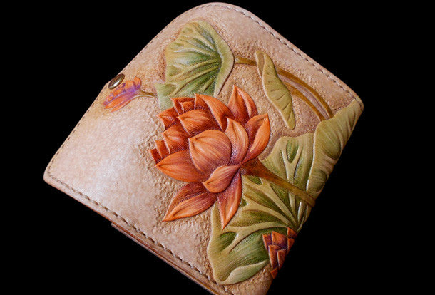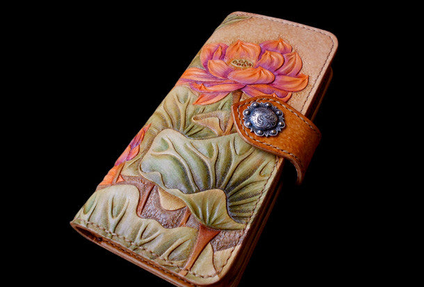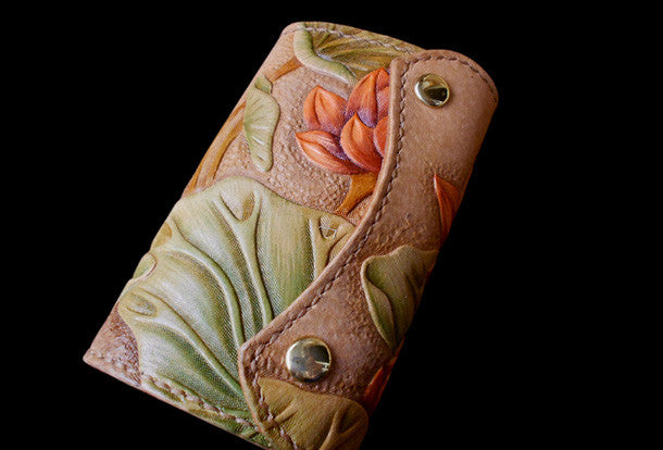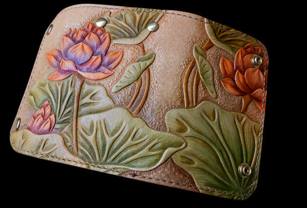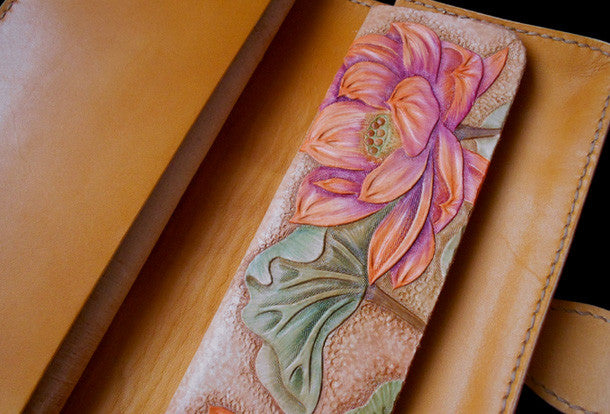 This is handcraft vintage ?hand painting lotus flower natural Italian Vegetable Tanned leather? hand dyed long/keys/card?wallet for women.The long wallet is bi
