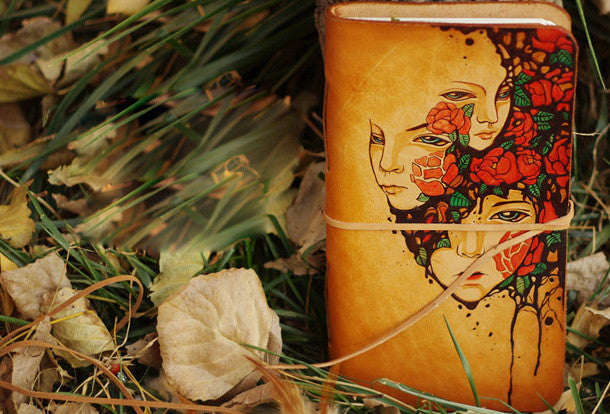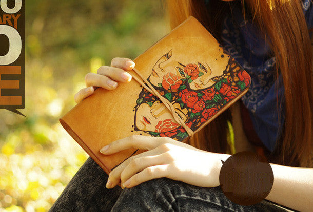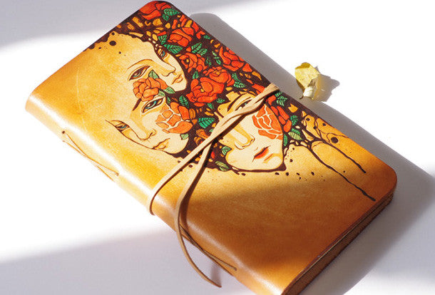 This is Handcraft vintage brown leather hand painted dyed notebook/travel book/diary/journal.The book case is hand painted.