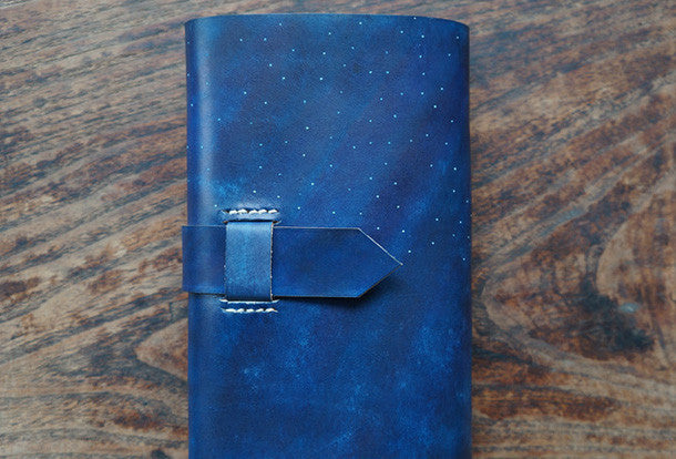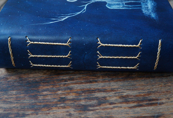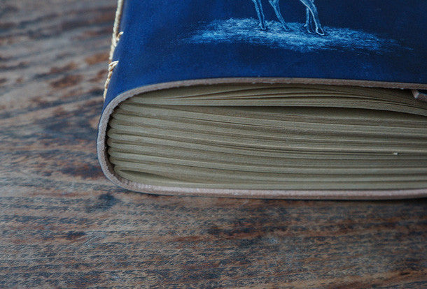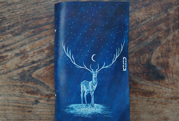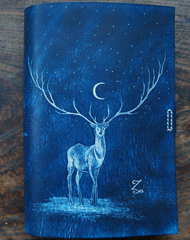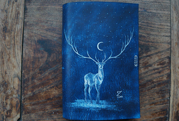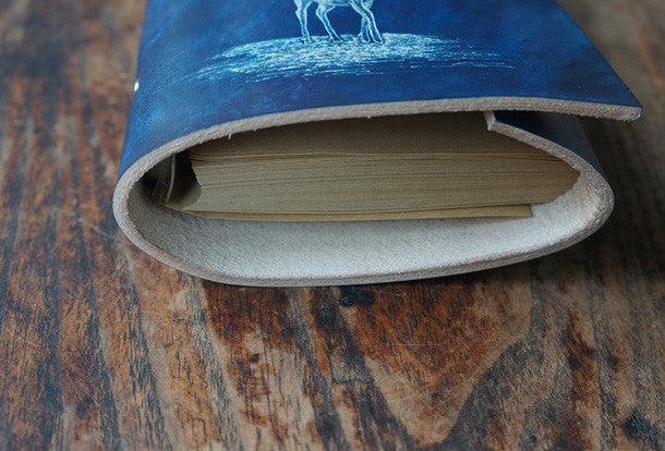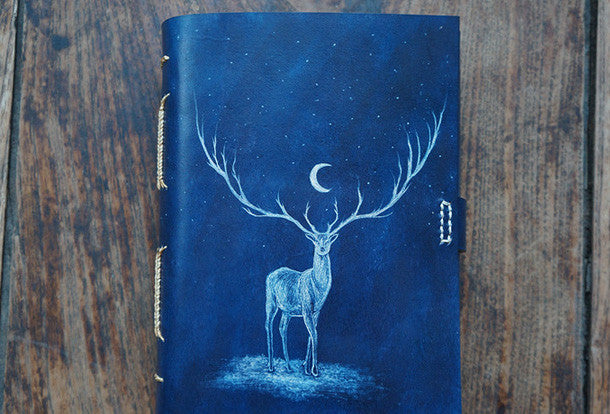 This is Handmade vintage blue deer custom?leather hand painted dyed notebook/travel book/diary/journal.The book case is hand painted.