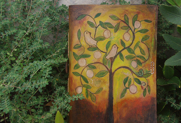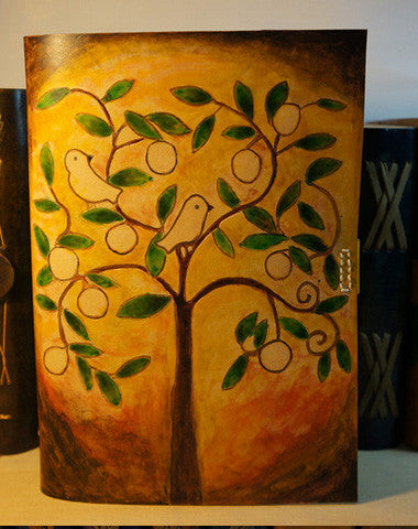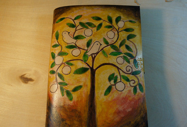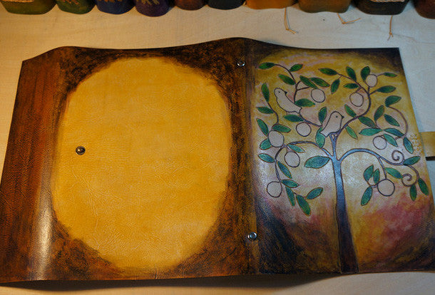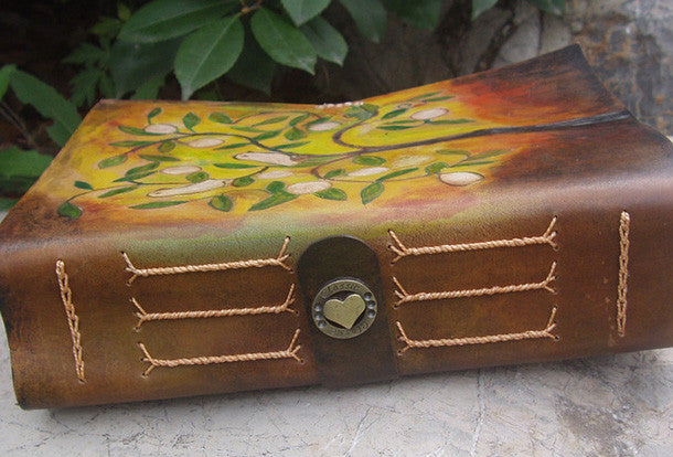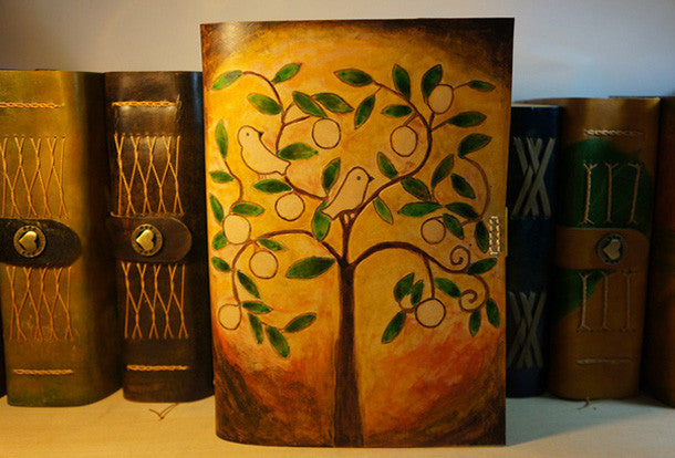 This is Handmade vintage tree bird?custom?leather hand painted dyed notebook/travel book/diary/journal.The book case is hand painted.