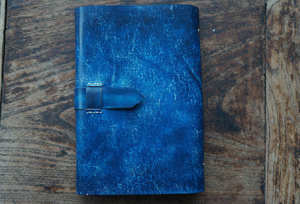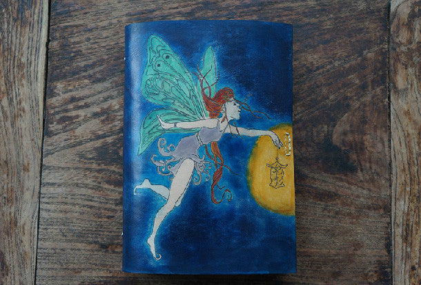 This is Handmade A5 vintage blue elfin custom?leather hand painted dyed notebook/travel book/diary/journal.The book case is hand painted.