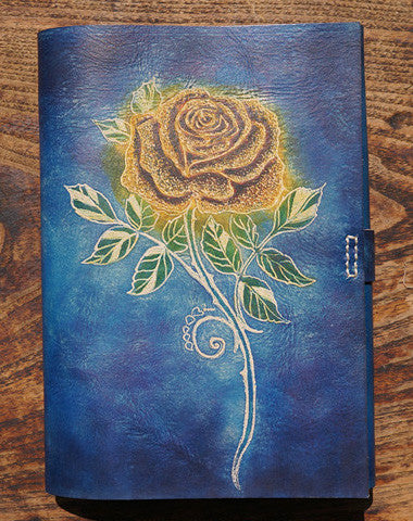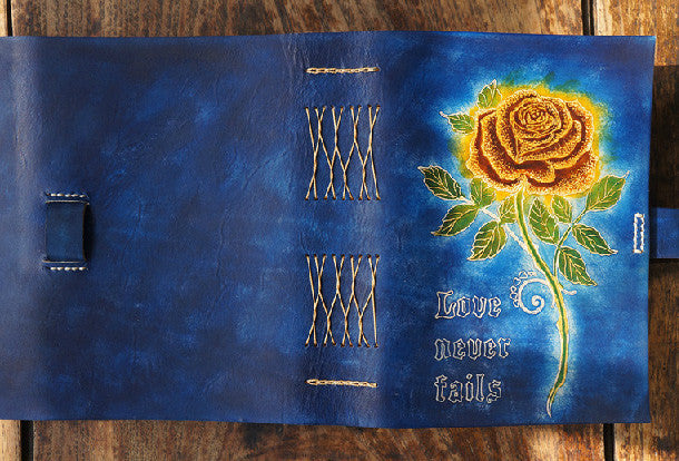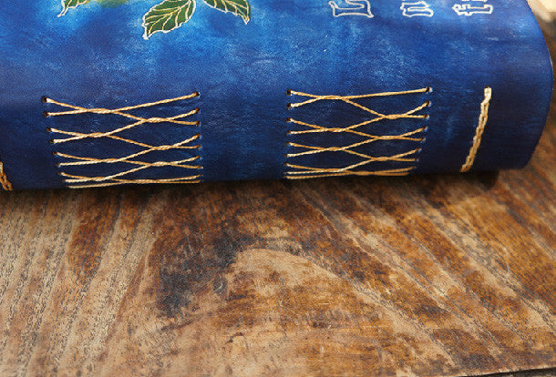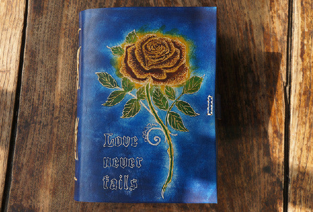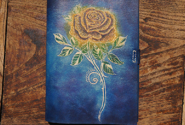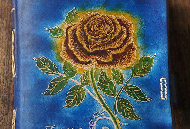 This is Handmade vintage blue rose custom?leather hand painted dyed notebook/travel book/diary/journal.The book case is hand painted.