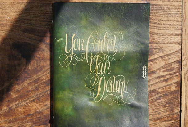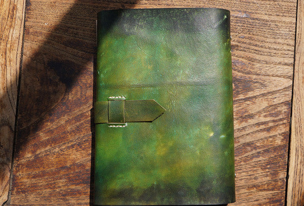 This is Handmade vintage dark green?custom?leather hand painted dyed notebook/travel book/diary/journal.The book case is hand painted.
