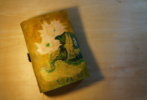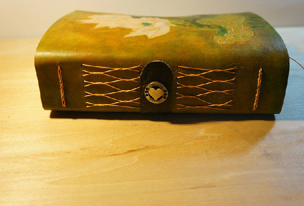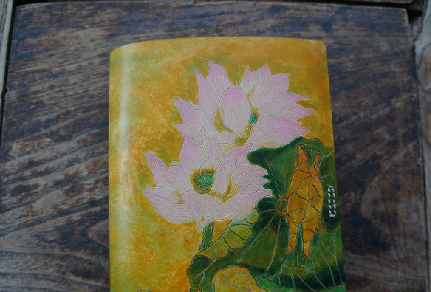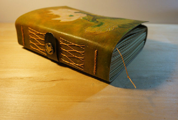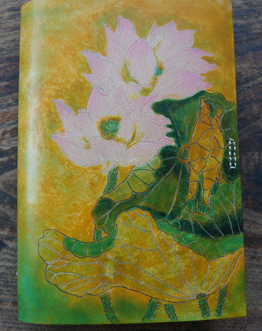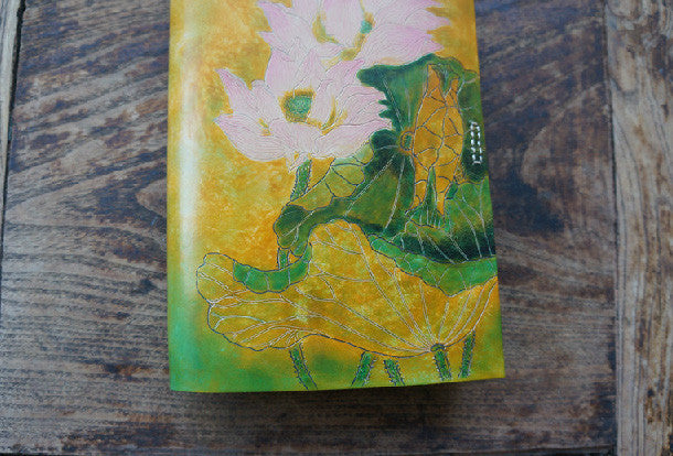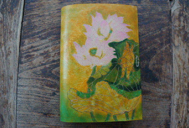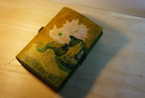 This is Handmade vintage lotus flower??custom?leather hand painted dyed notebook/travel book/diary/journal.The book case is hand painted.