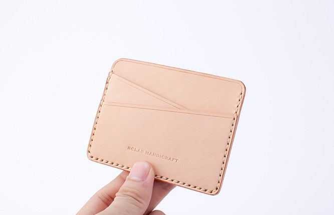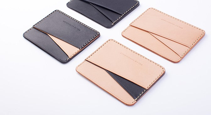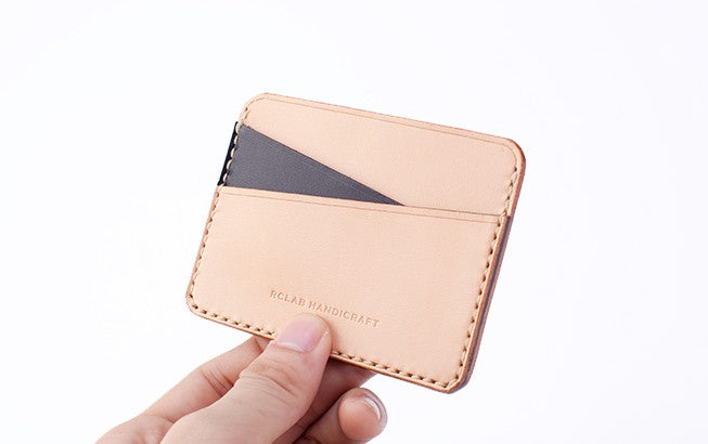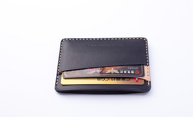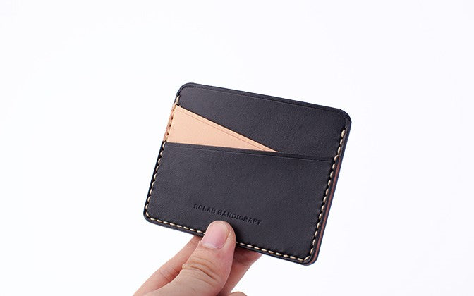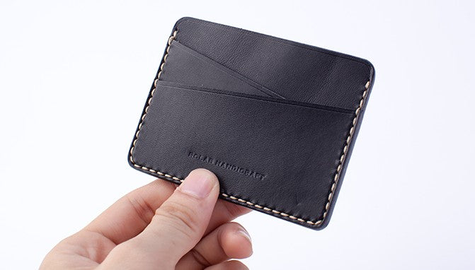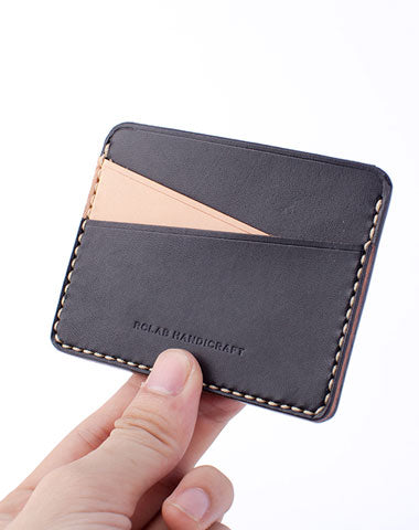 Style: Handmade Beige Black Leather Women Men Small Card Holder Card Wallet for Men Women