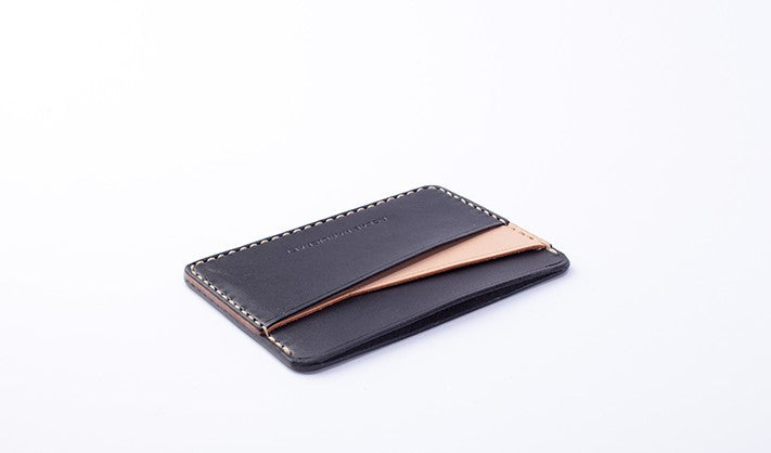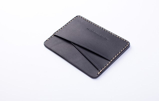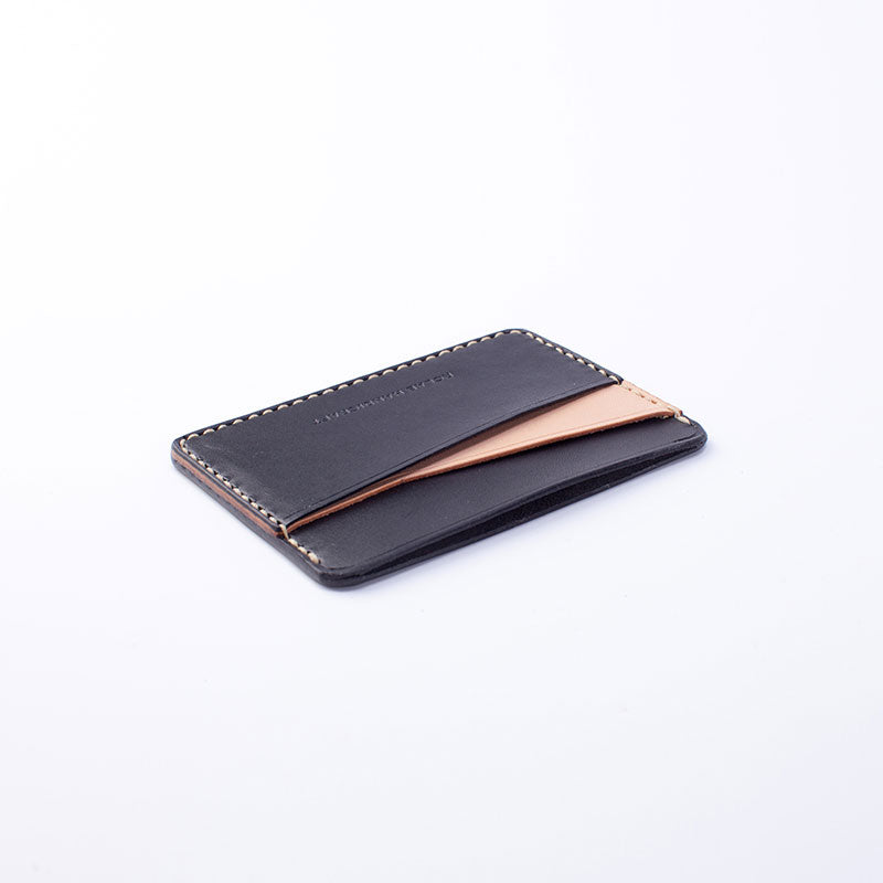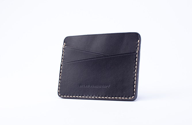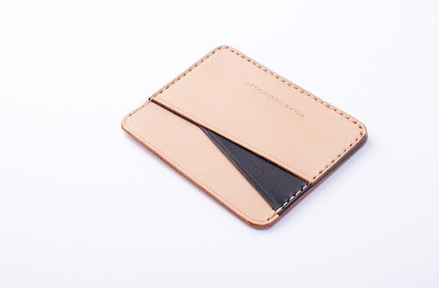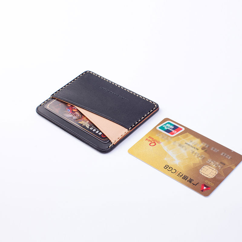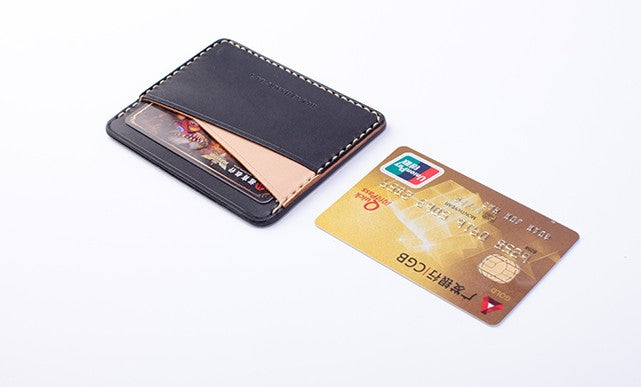 Design: Handmade Beige Black Leather Women Men Small Card Holder Card Wallet for Men Women