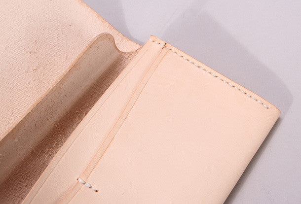 This is handcraft handmade vintage beige black modern natural Italian Vegetable Tanned leather?clutch long wallet for women men.The wallet is bifold,color is beige,black.There are 2?full size bill slots/holders,4 ID/credit card slots/holders~Hand-made in the traditional method with punched holes and saddle stitching by hand.