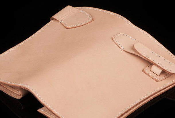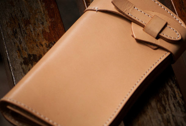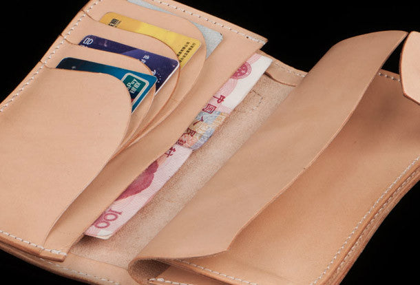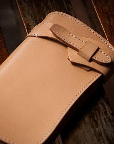 This is handmade beige?natural Italian Vegetable Tanned leather long biker wallet purse clutch for men.The wallet is bifold,color is beige.There are 2?full size bill slots/holders, 4?ID/credit card slots/holders,2 coin change slot~Hand-made in the traditional method with punched holes and saddle stitching by hand.