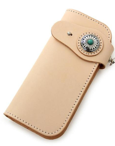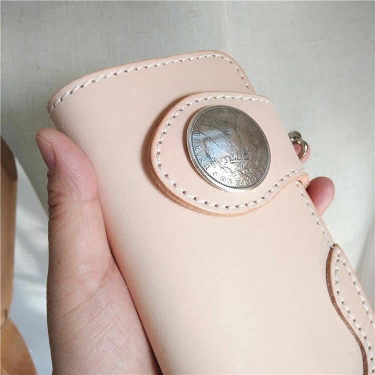 Style: Handmade Beige Long Biker Wallet with Chain Cool Mens Leather Biker Chain Wallet
