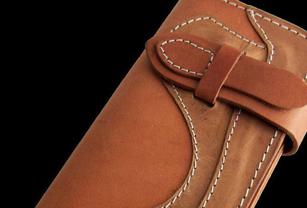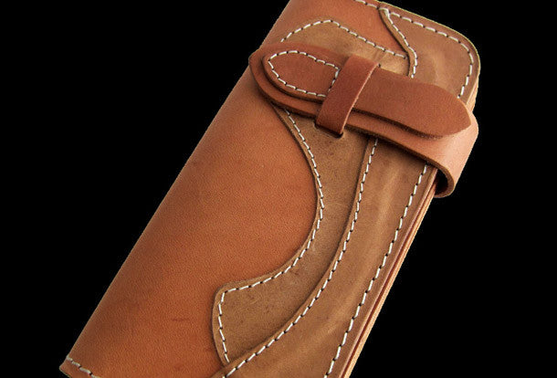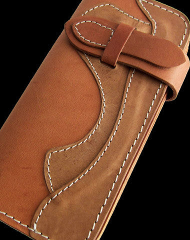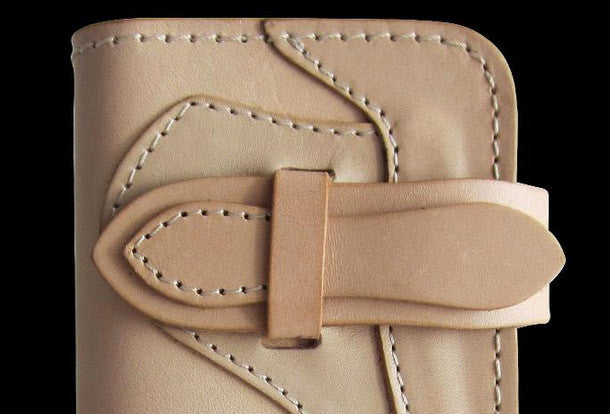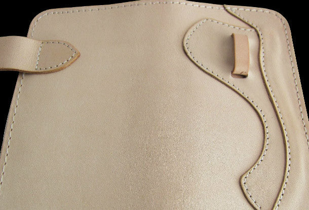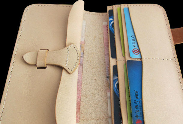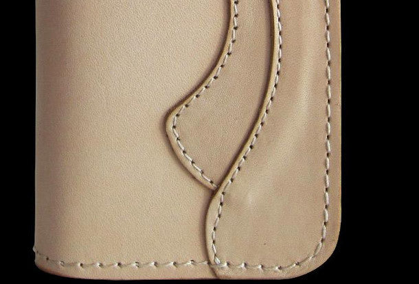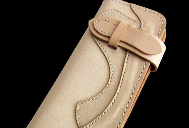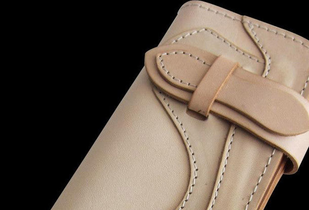 This is handmade men beige natural Italian Vegetable Tanned leather long biker wallet purse clutch for men.The wallet is bifold,color is beige.There are 3 full size bill slots/holders, 6 ID/credit card slots/holders,1 zip coin change slot~Hand-made in the traditional method with punched holes and saddle stitching by hand.