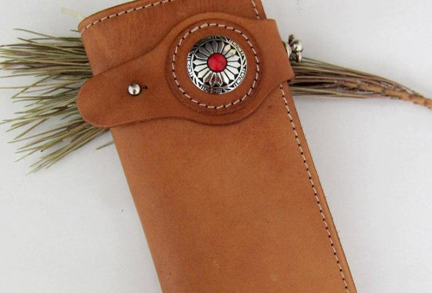 Handmade beige tan men leather biker wallet with chain Long wallet clutch for men