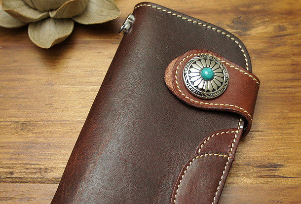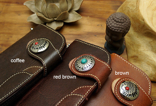 This is handmade natural Italian Vegetable Tanned leather long coffee red?brown biker wallet with chain purse clutch for men.The wallet is bifold,color is coffe