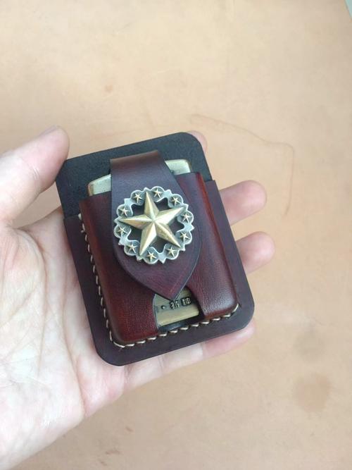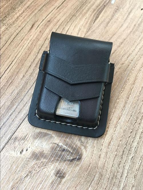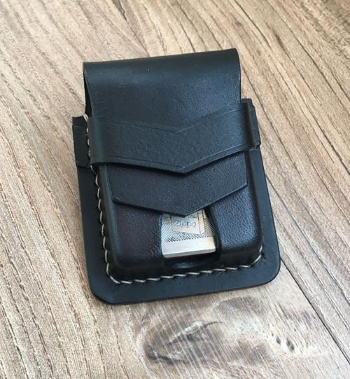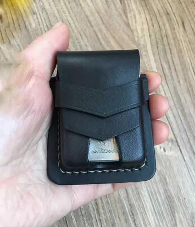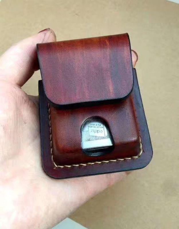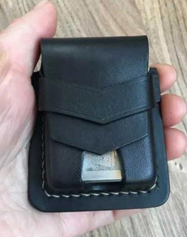 Style: Handmade Black Leather Hanging Waist with Lighter Cover Protective Lighter Cover For Men
