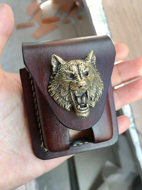 Design: Cool Handmade Coffee Leather Mens Armor Zippo Lighter Case Armor Zippo Lighter Holder for Men