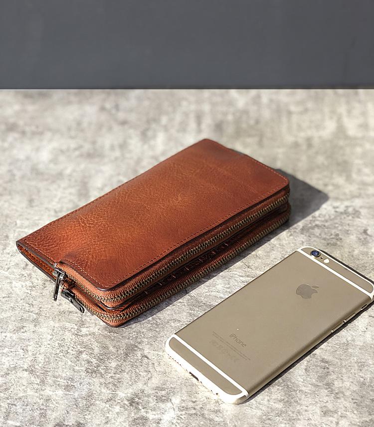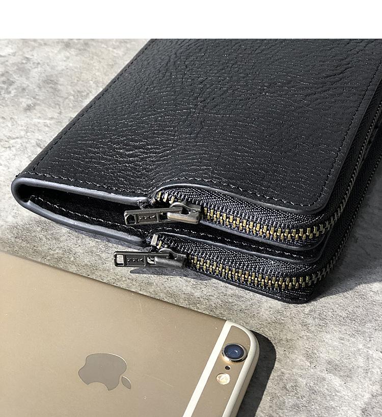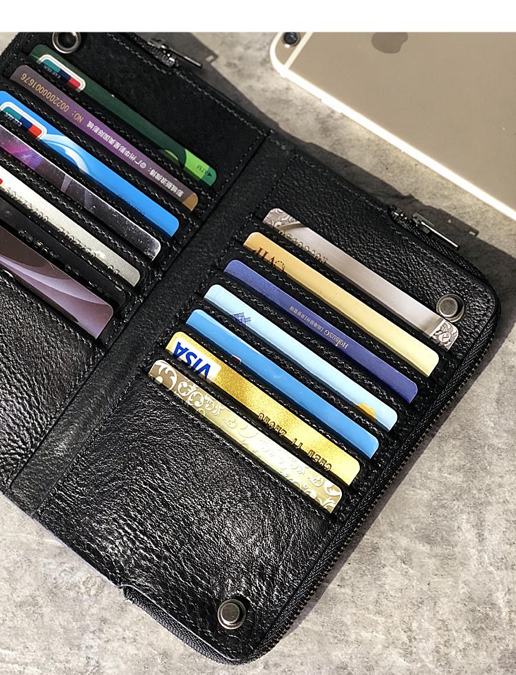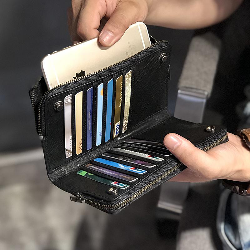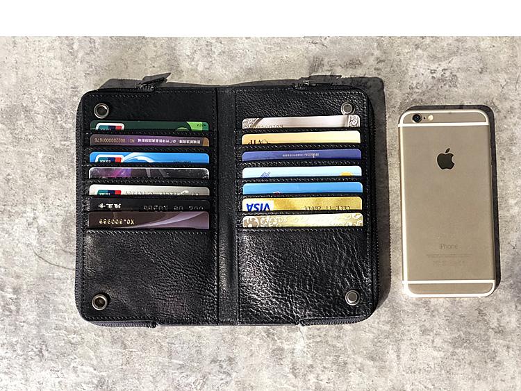 Design: Handmade Black Leather Mens Bifold Long Wallet Brown Multifunction Wallet Phone Wallet Card Holder Clutch Men