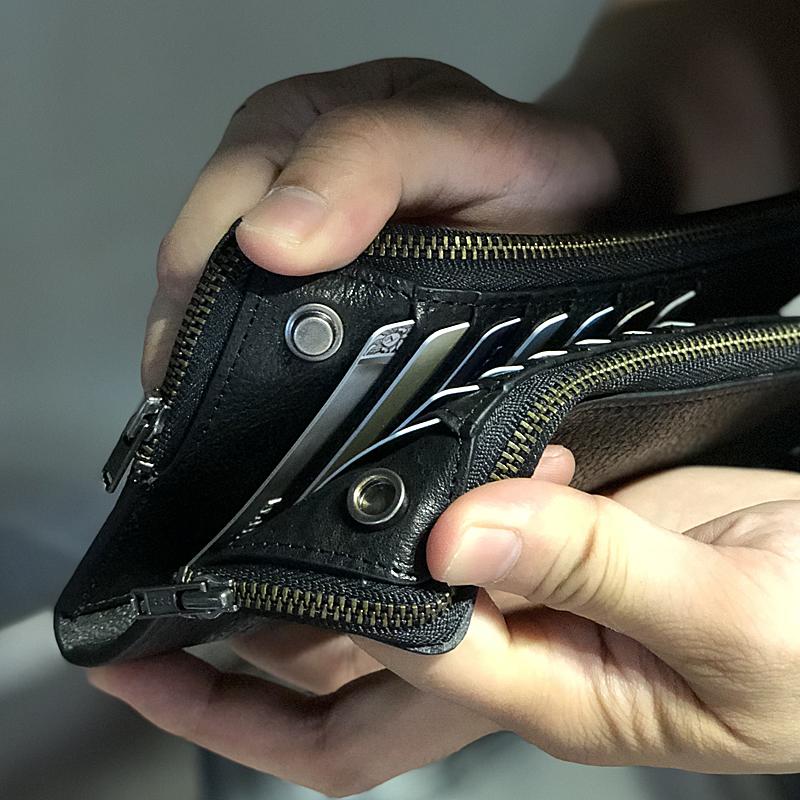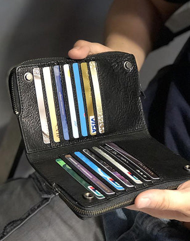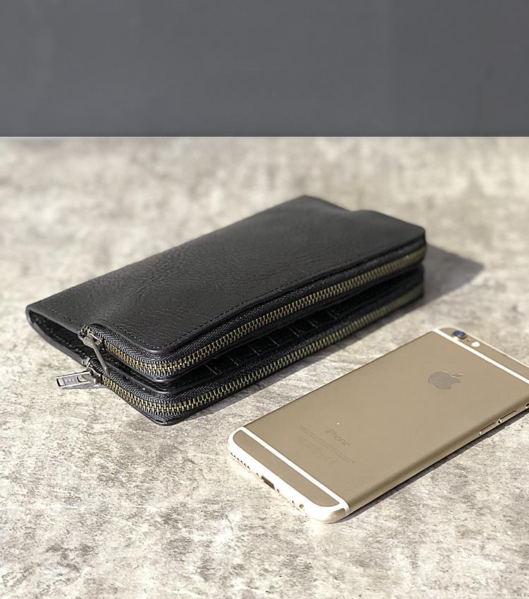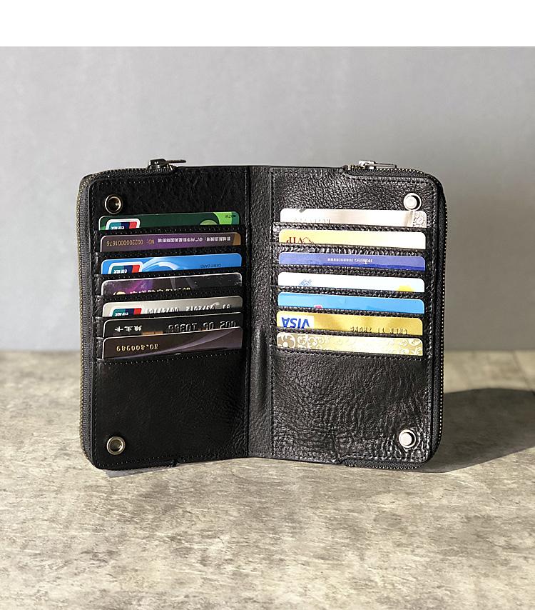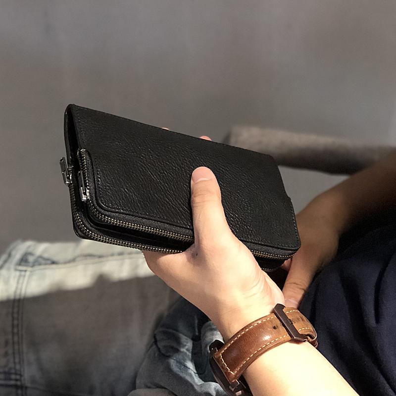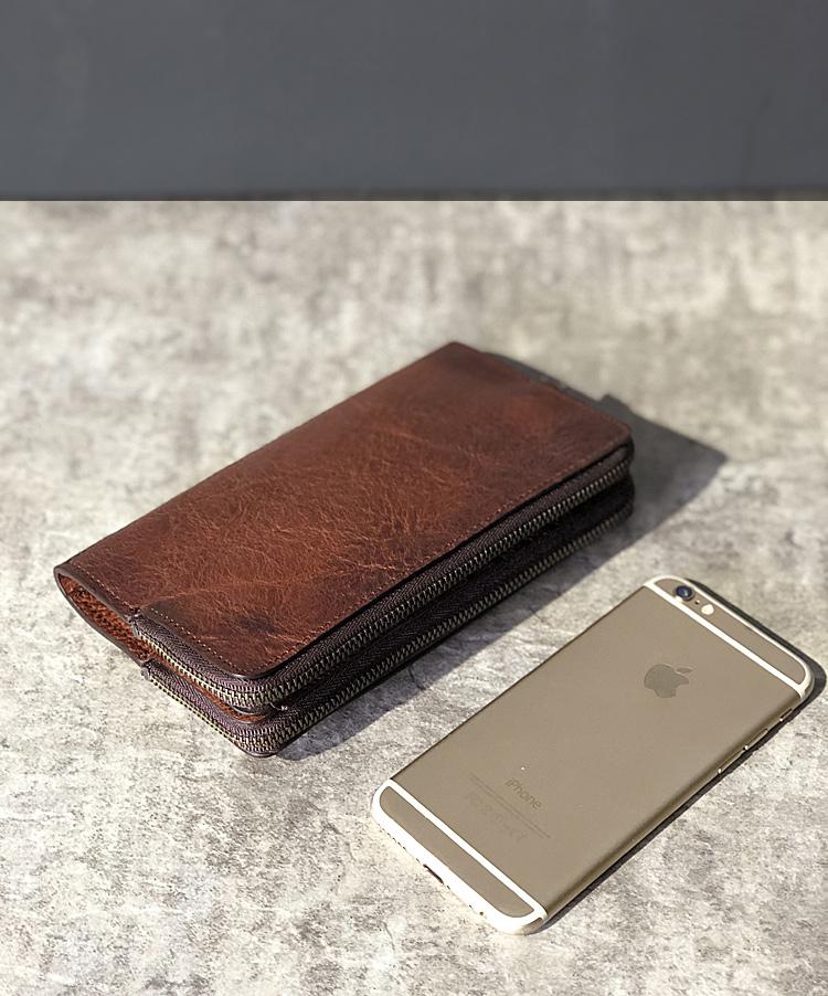 Design: Handmade Black Leather Mens Bifold Long Wallet Brown Multifunction Wallet Phone Wallet Card Holder Clutch Men