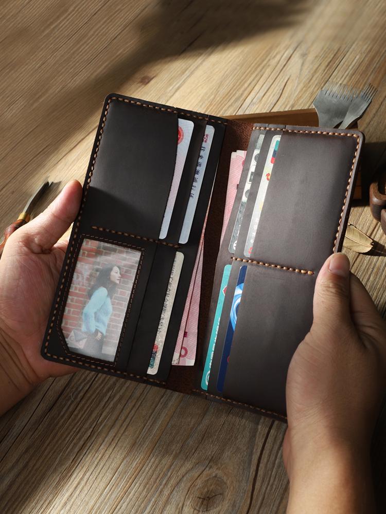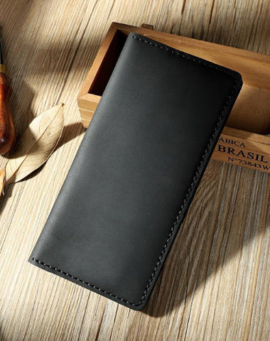 Style: Handmade Black Leather Mens Bifold Long Wallet Personalized Black Checkbook Wallets for Men