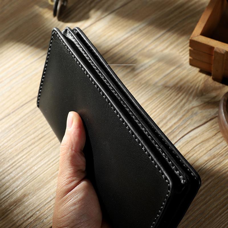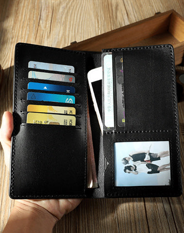 Style: Handmade Black Leather Mens Bifold Long Wallets Personalized Black Checkbook Wallet for Men