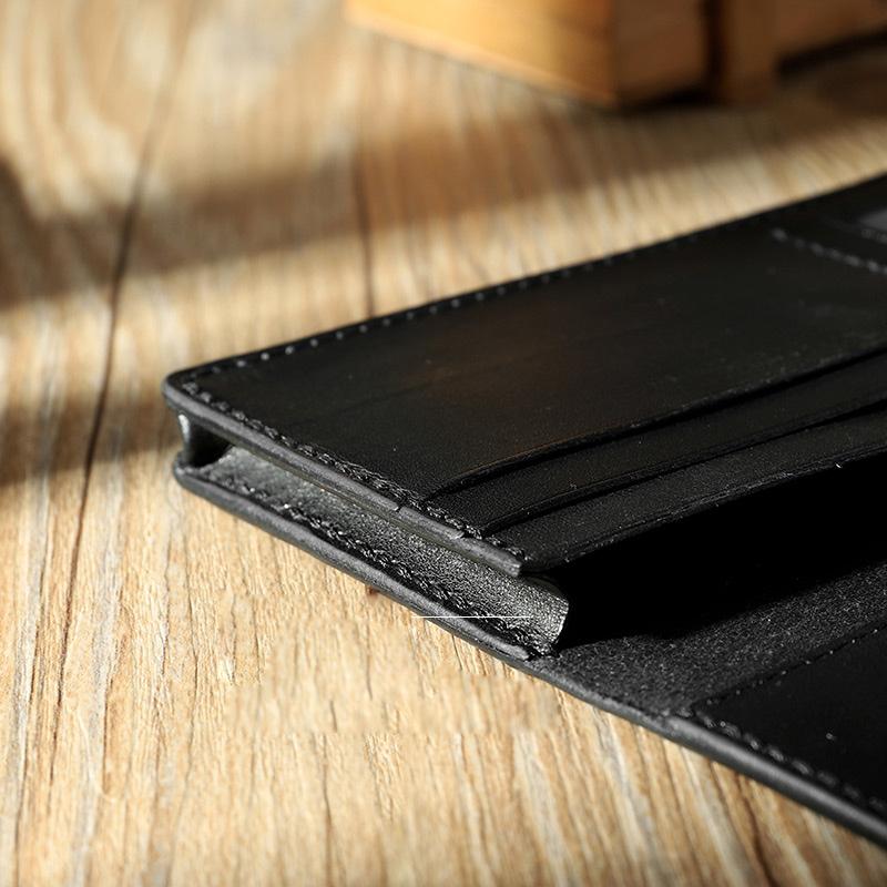 Design: Handmade Black Leather Mens Bifold Long Wallets Personalized Black Checkbook Wallet for Men