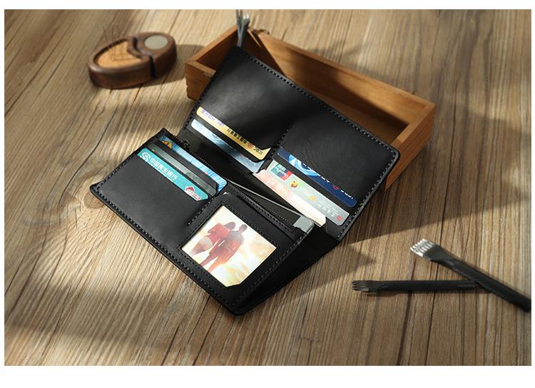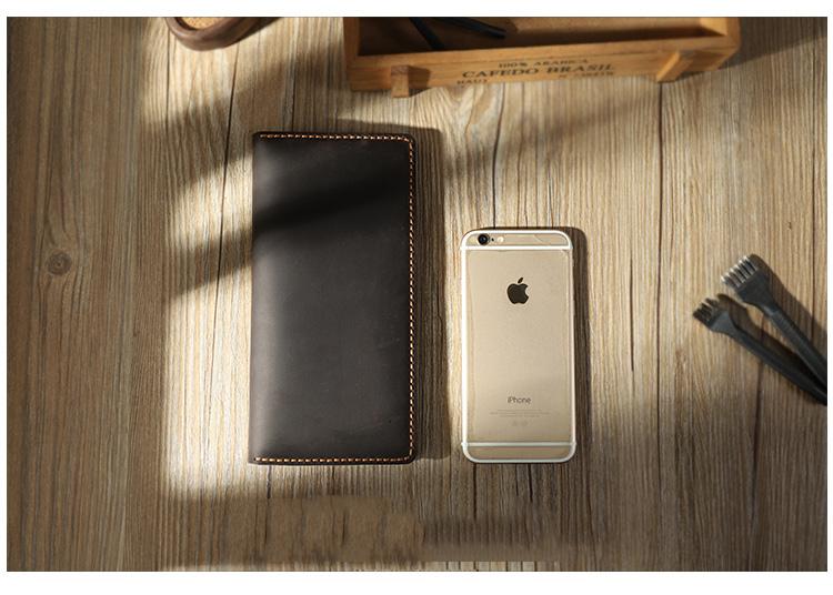 Design: Handmade Coffee Leather Mens Bifold Long Wallets Personalized Coffee Checkbook Wallets for Men