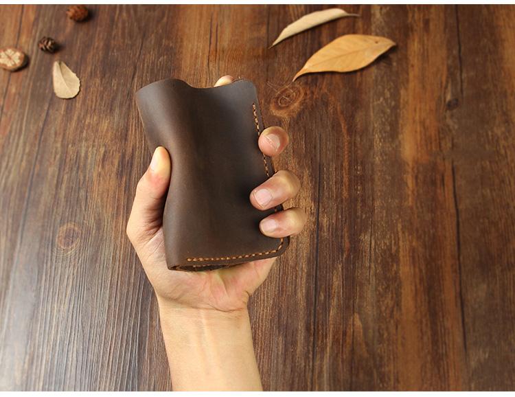 Style: Handmade Coffee Leather Mens Billfold Wallets Personalize Coffee Bifold Small Wallets for Men