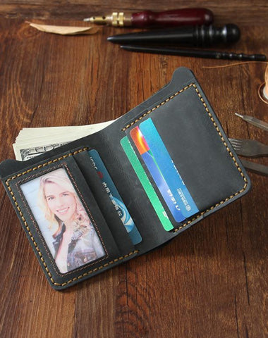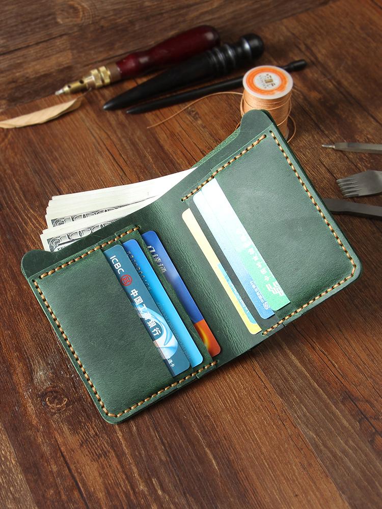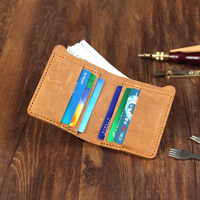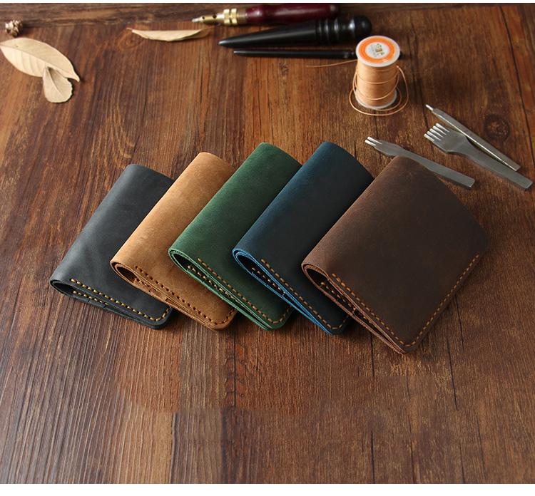 Design: Handmade Coffee Leather Mens Billfold Wallets Personalize Coffee Bifold Small Wallets for Men