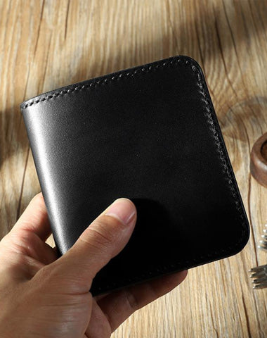 Style: Handmade Black Leather Mens Billfold Wallets Personalize Black Bifold Small Wallets for Men