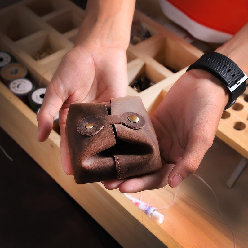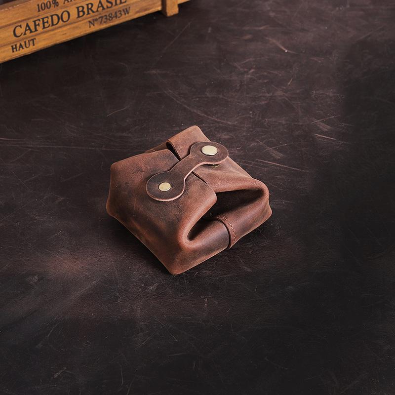 Style: Handmade Black Leather Mens Coin Wallet Mini Pouch Change Pouch for Men