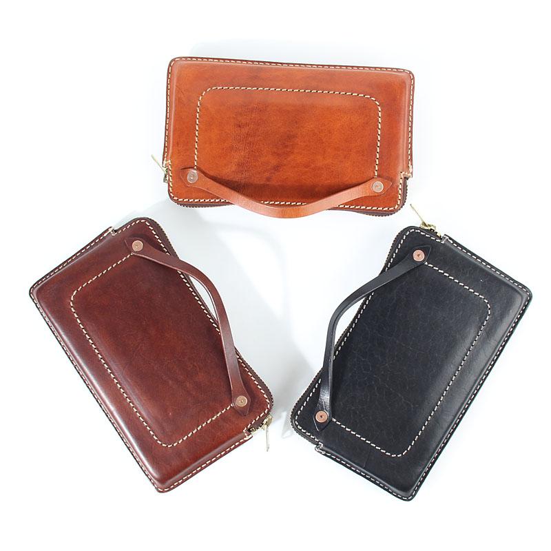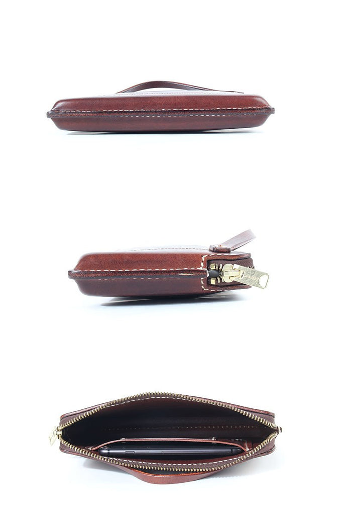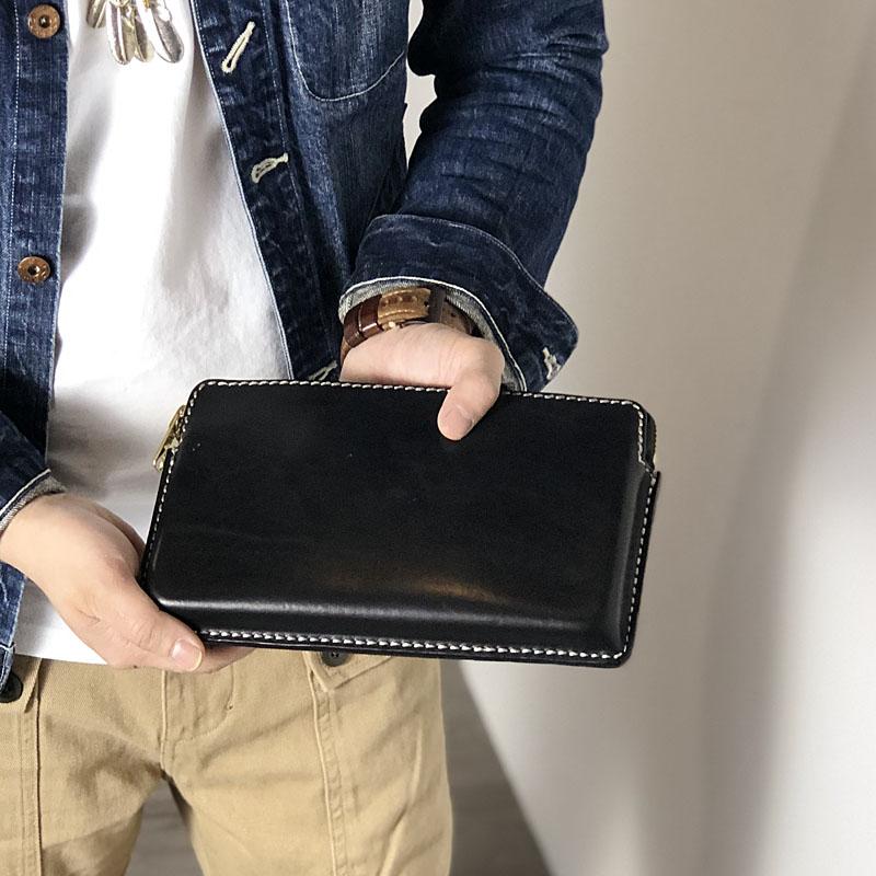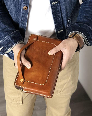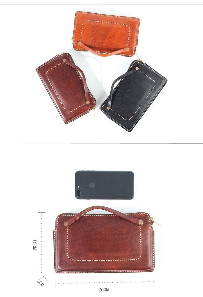 Style: Handmade Black Leather Mens Cool Brown Long Leather Wallet Biker Clutch Wristlet Wallet for Men