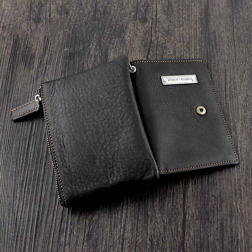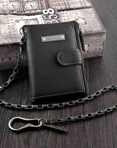 Design: Handmade Black Leather Men's Small Biker Wallet Chain Wallet billfold Wallet with Chain Coin Purse For Men