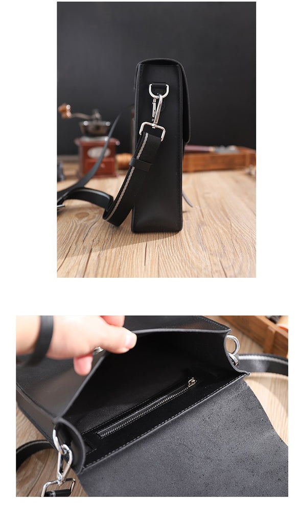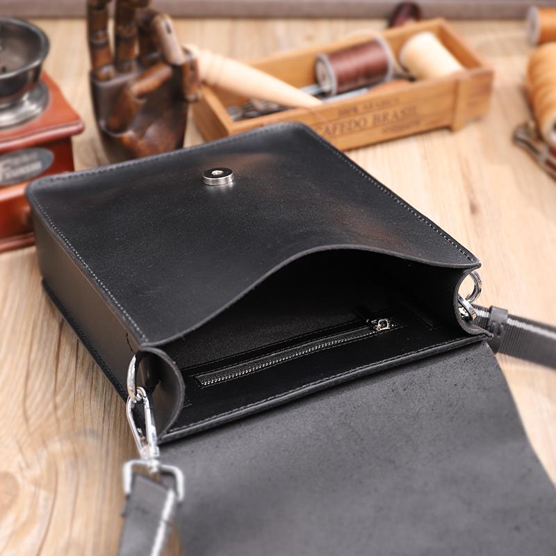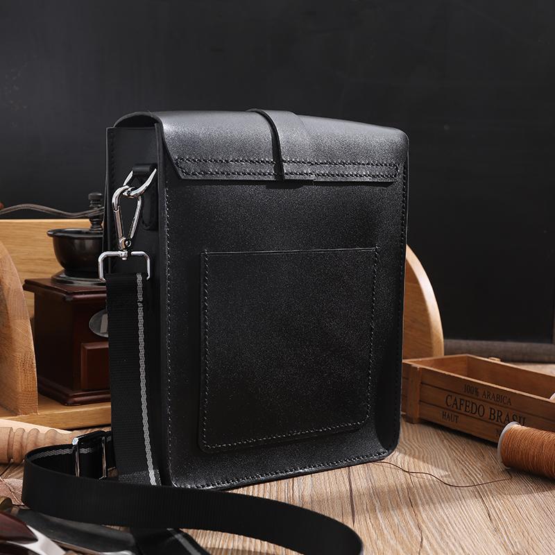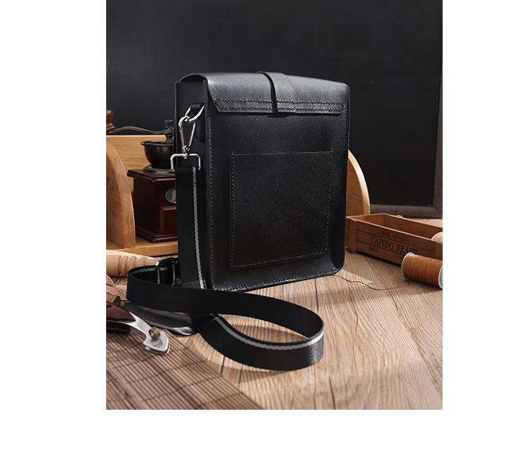 Style: Handmade Black LEATHER MENs Vertical Messenger Bag Black Small Side Bag FOR MEN