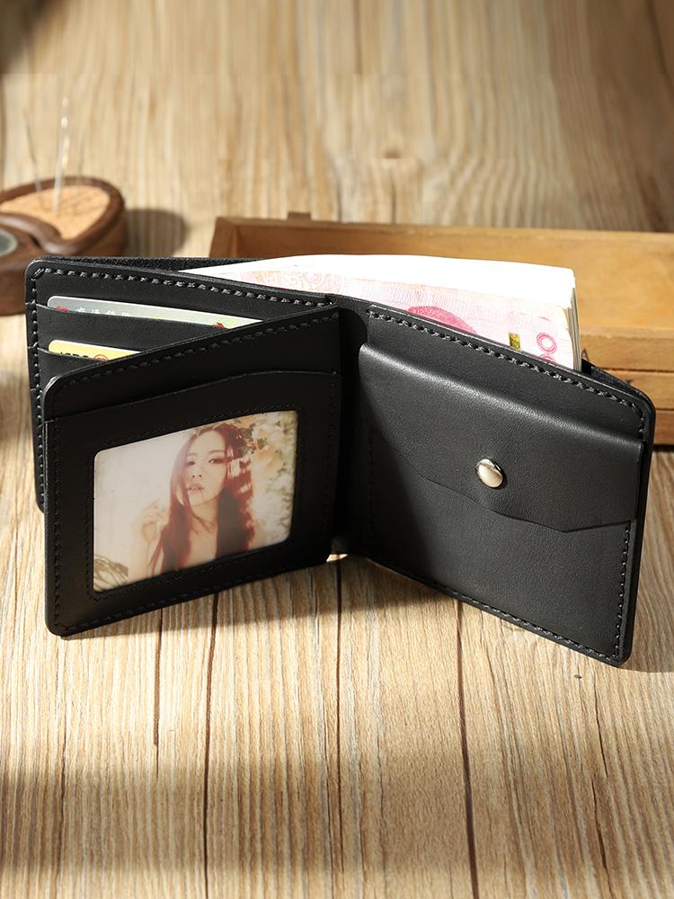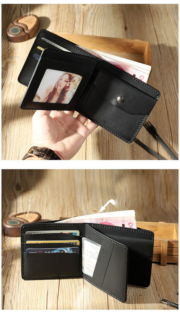 Handmade Black Leather Trifold Billfold Wallet Personalized Mens Trifold Wallets for Men