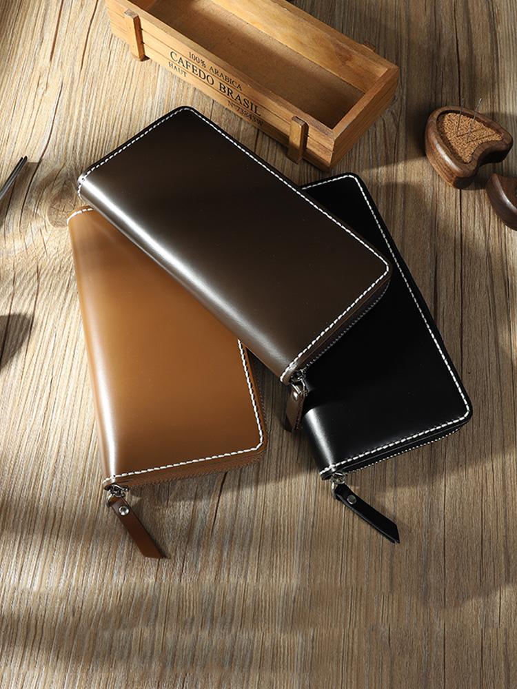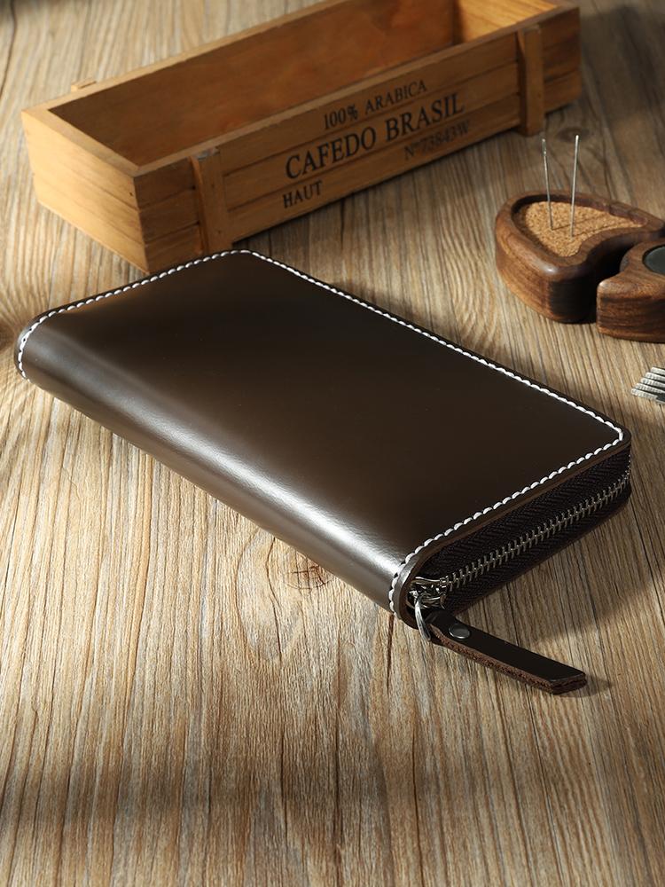 Design: Handmade Coffee Mens Zipper Long Wallets Personalized Leather Around Zipper Wallets for Men