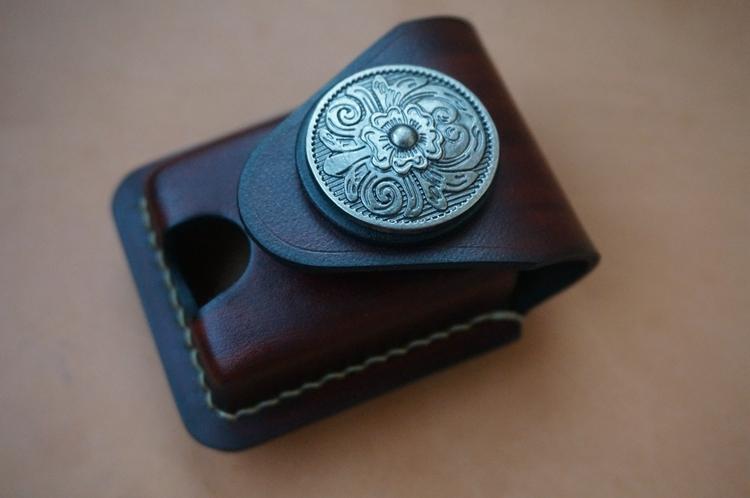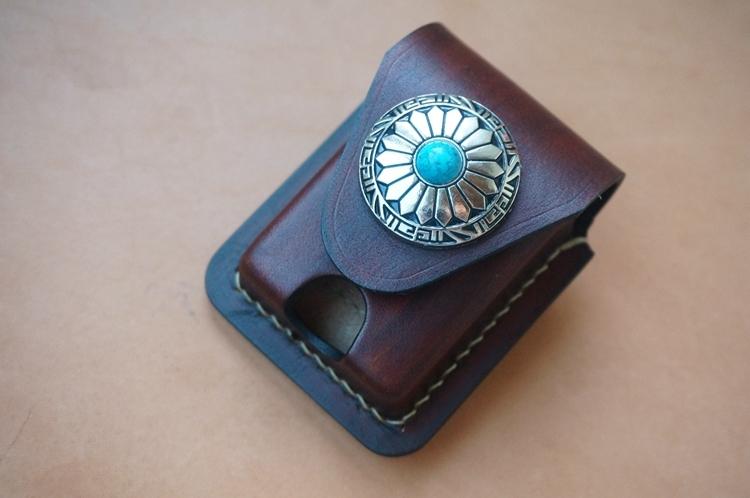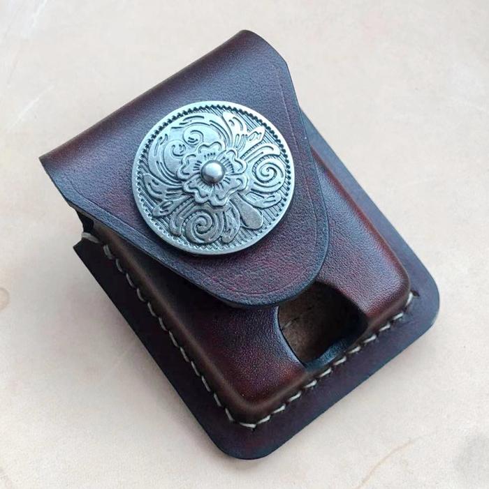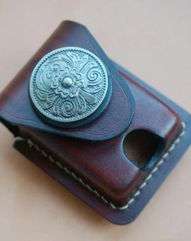 Design: Handmade Red Wine Thick Leather Lighter Cover Protective Lighter Cover For Men