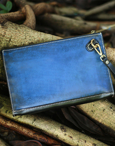 Design: Handmade Leather Clutch Wristlet Bag Wallet Zipper Large Clutch Wristlet Wallet for Men