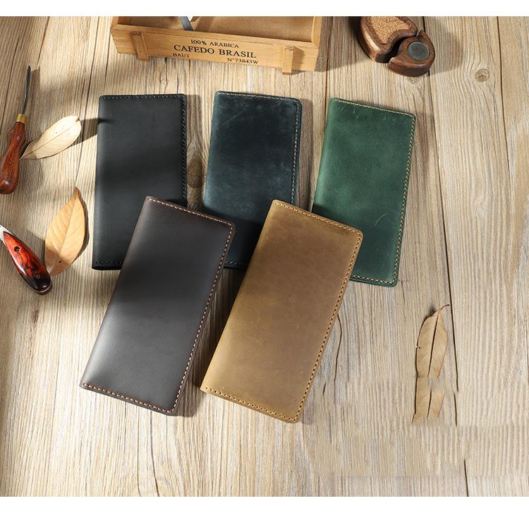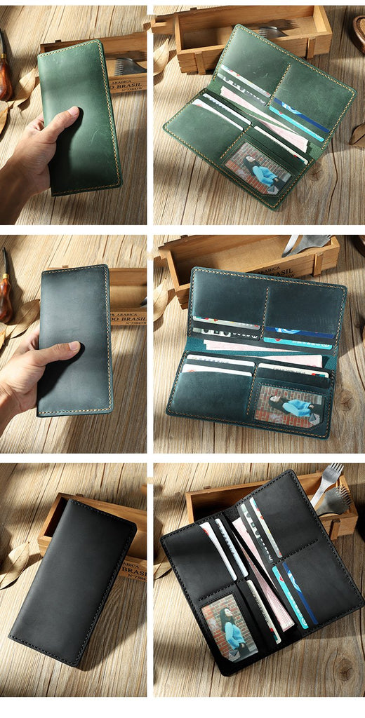 Style: Handmade Black Leather Mens Bifold Long Wallet Personalized Black Checkbook Wallets for Men