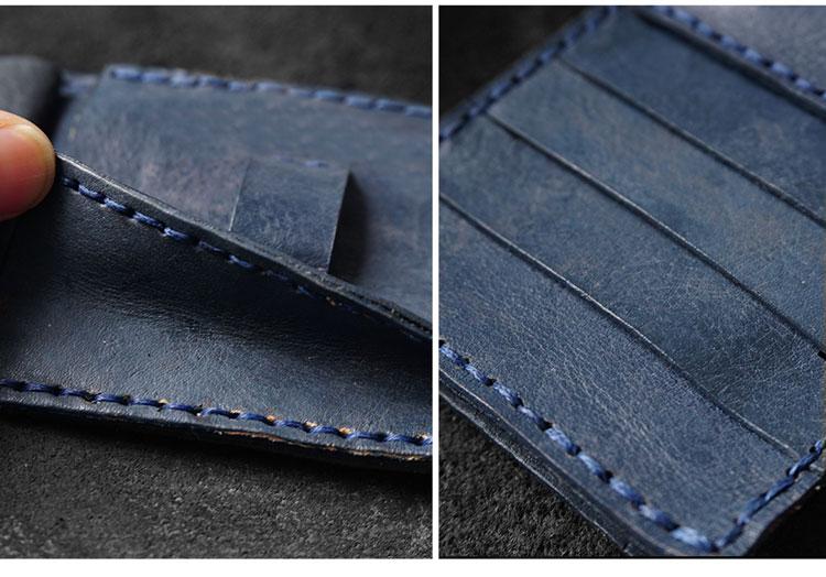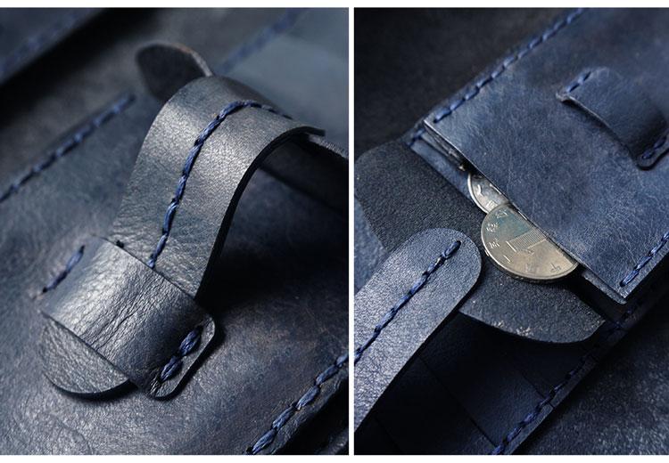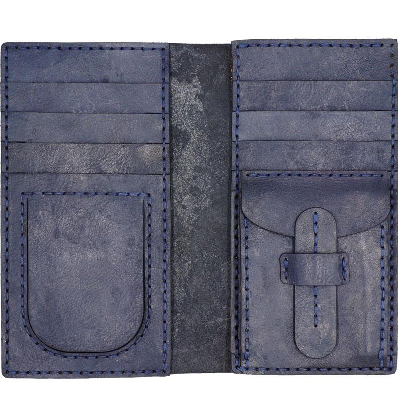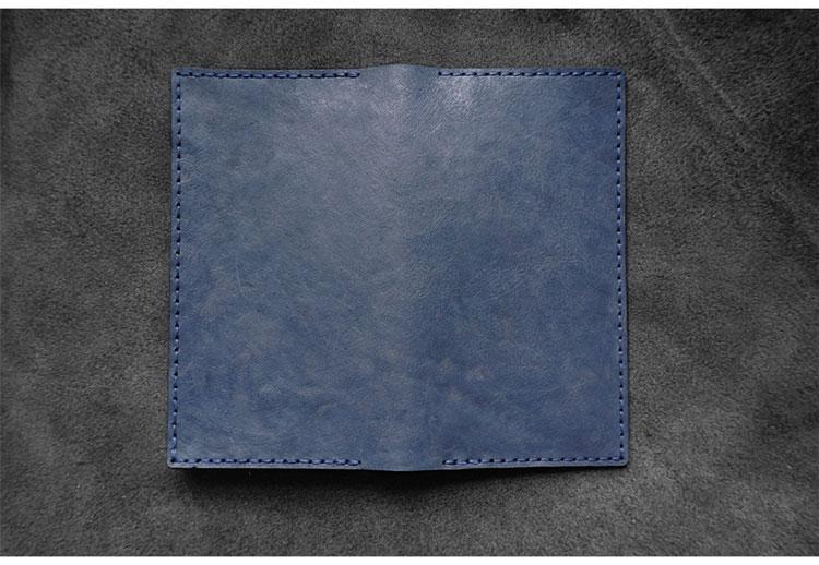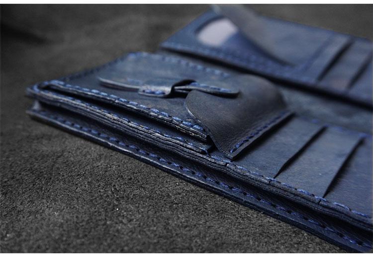 Design: Handmade Blue Leather Mens Bifold Long Wallets Checkbook Wallet Lots Cards Long Wallet for Men