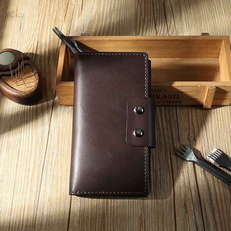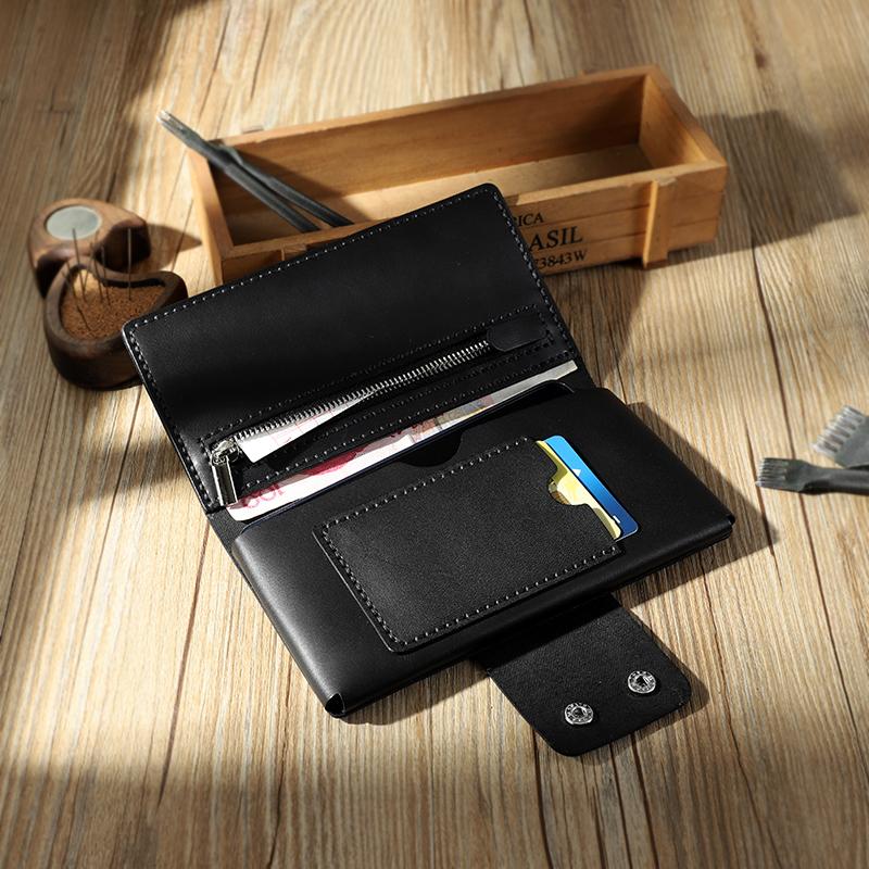 Style: Handmade Coffee Leather Mens Bifold Long Wallets Personalized Black Checkbook Leather Wallets for Men